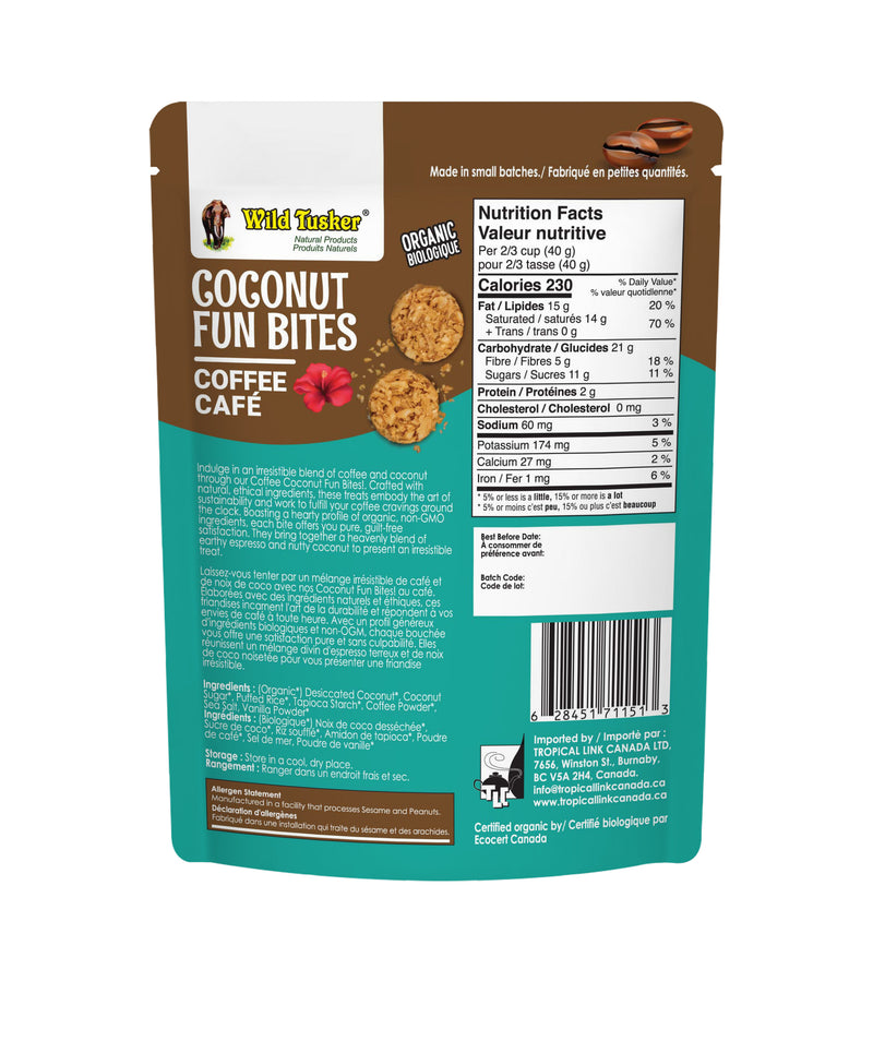 Wake up your taste buds with the bold crunch of our Coffee Coconut Fun Bites! Each bite offers a satisfying crispy texture paired with the earthy richness of organic coffee and the smooth, nutty flavor of coconut. Crafted with carefully selected ingredients, this is the perfect crunchy snack for the coffee aficionados